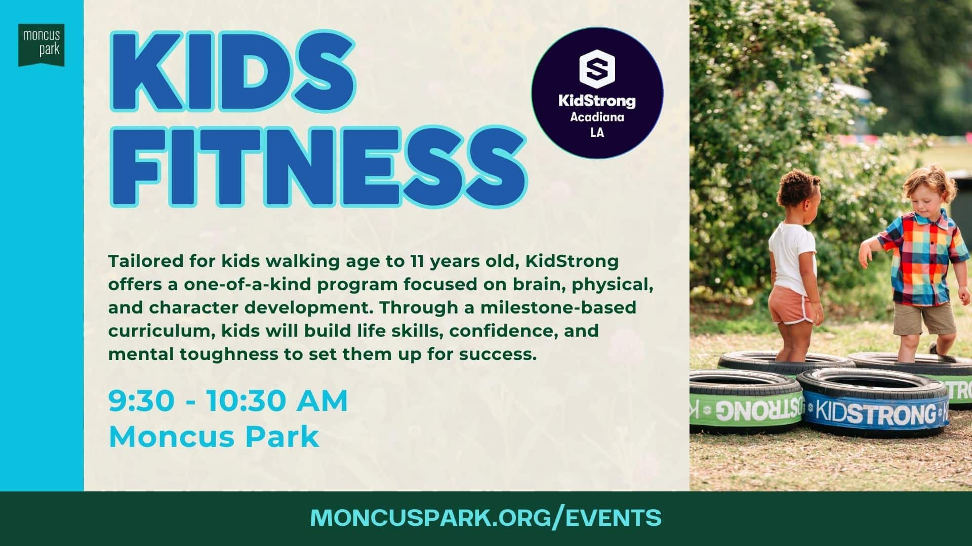 Kids Fitness with KidStrong at Moncus Park is a fun, high-energy pop-up designed to help kids build strength, confidence, and important life skills through movement and play. Led by the KidStrong team, this engaging program supports brain, physical, and character development for children from walking age to 11 years old.